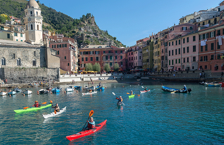 The Italian Riviera and Cinque Terre, in Northern Italy, offers a unique blend of scenic beauty, from colourful fishing villages to vine-clad cliffs, best explored by kayak and on foot where roads can’t reach.